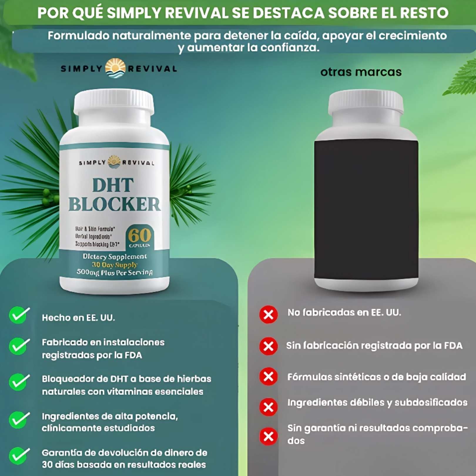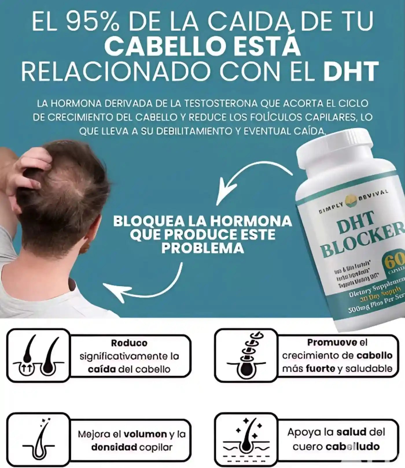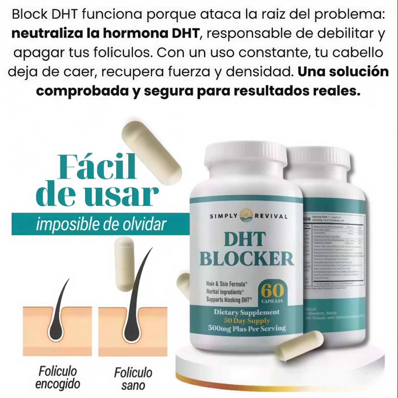 La caída no es por estrés, es por la hormona DHT atrofiando tu raíz. Nuestra fórmula ataca el problema real sin fármacos.