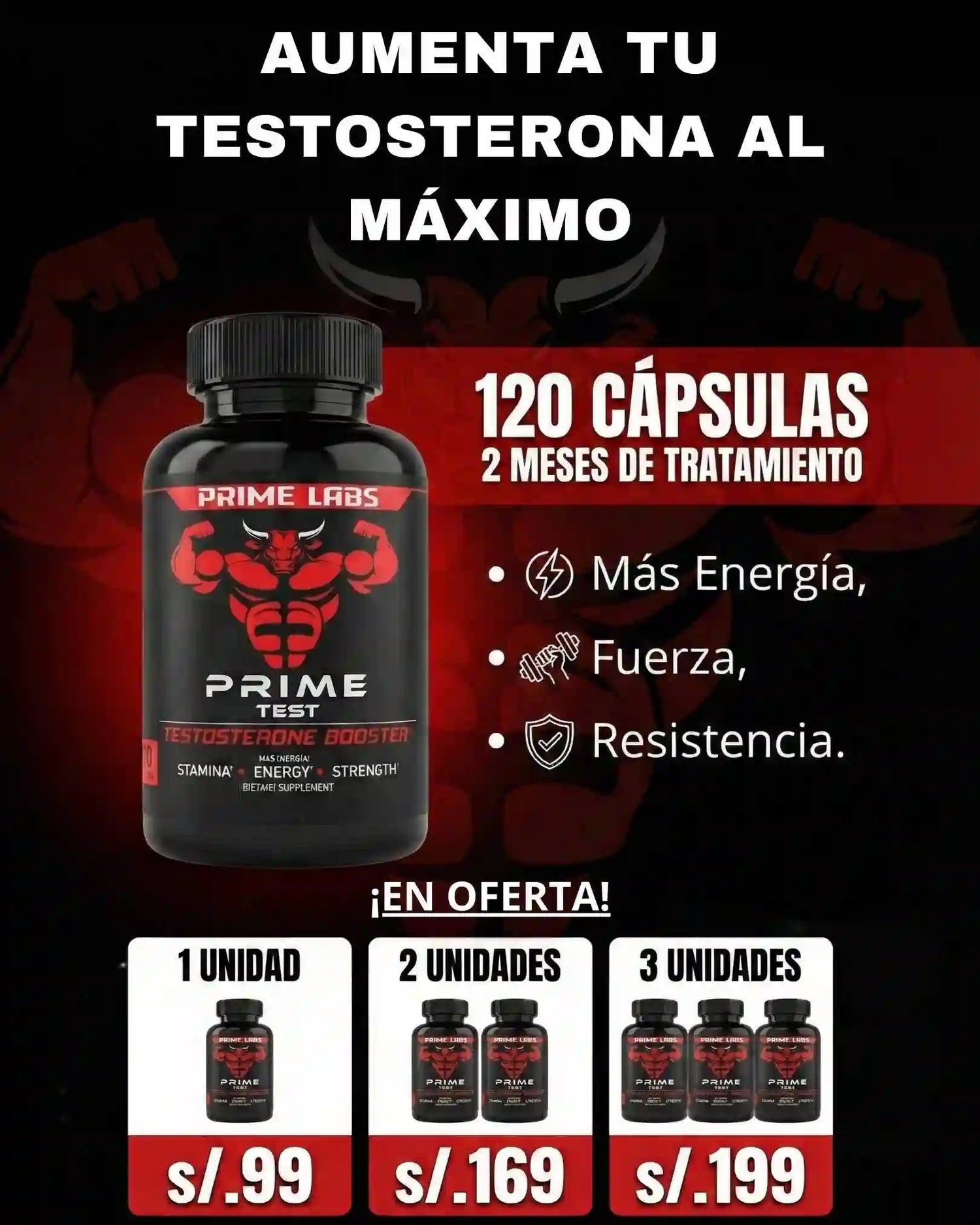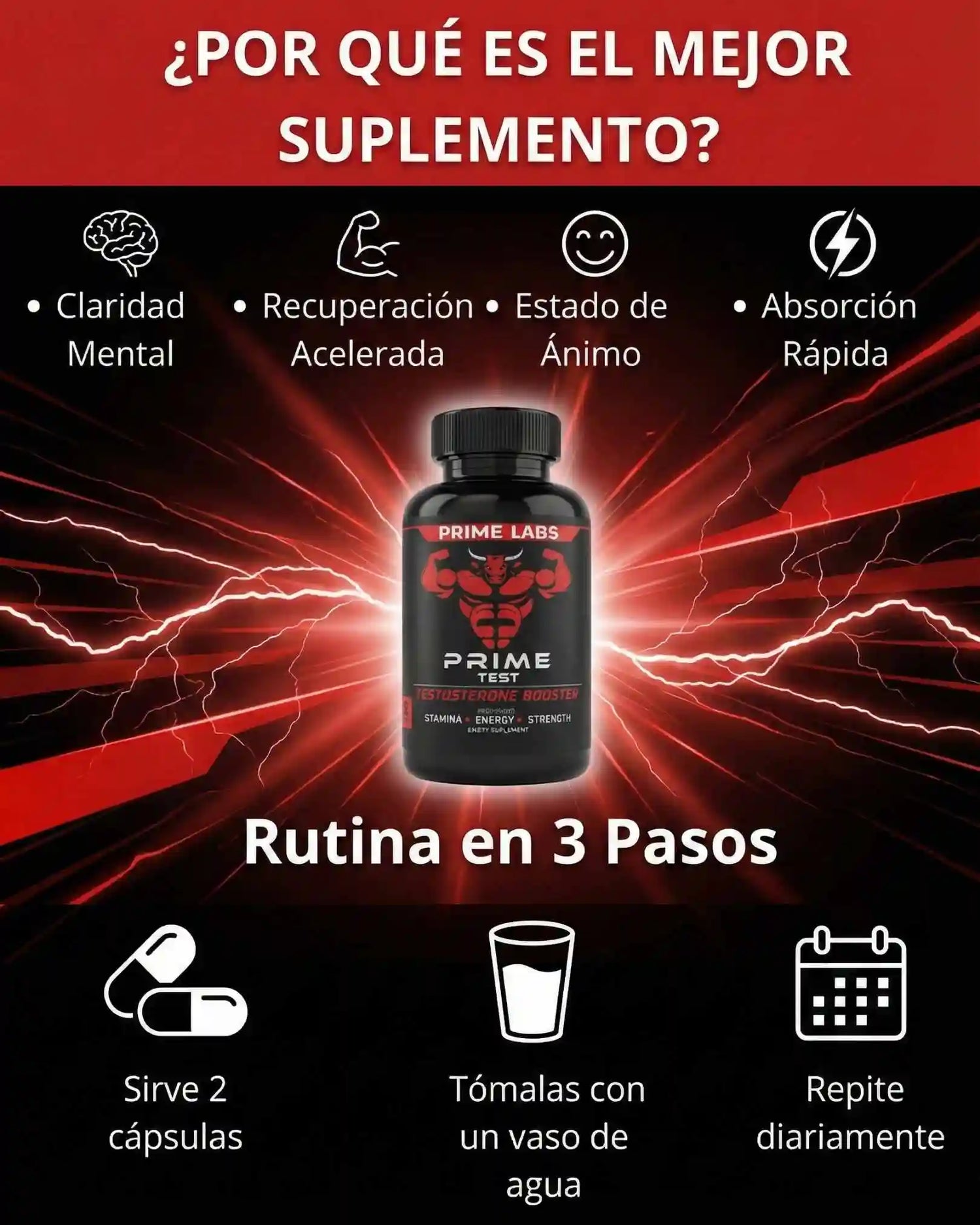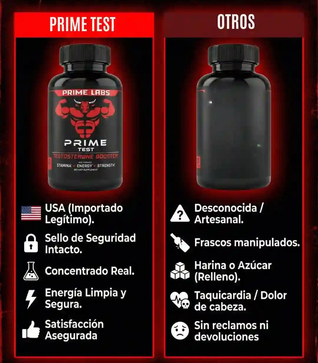 No. Prime Test es una fórmula 100% natural desarrollada en laboratorios de EE.UU. No genera dependencia, no tiene efecto rebote.
